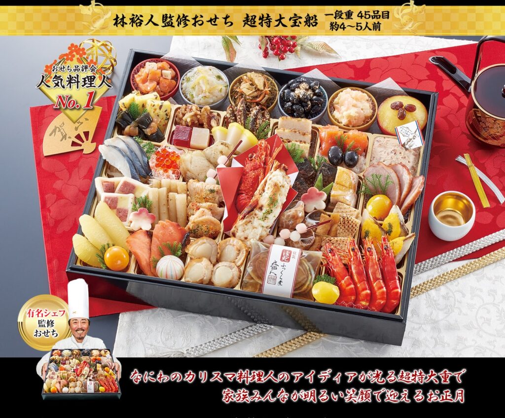 テレビでもお馴染みの林 裕人監修シェフ監修の超特大一段おせち。