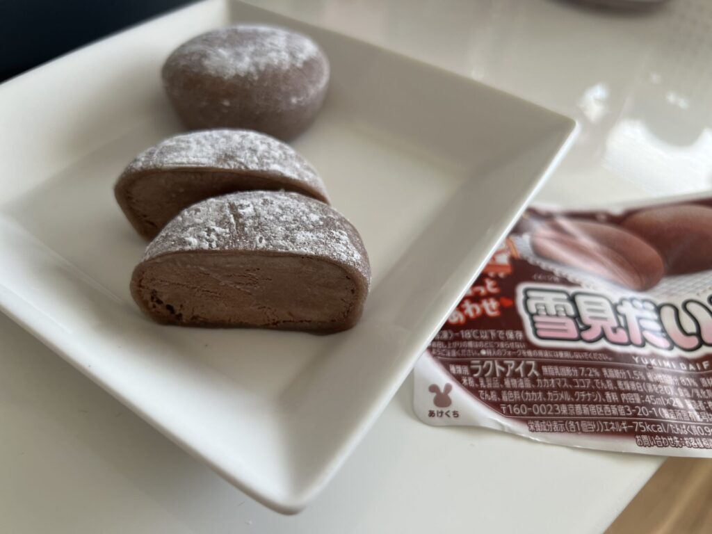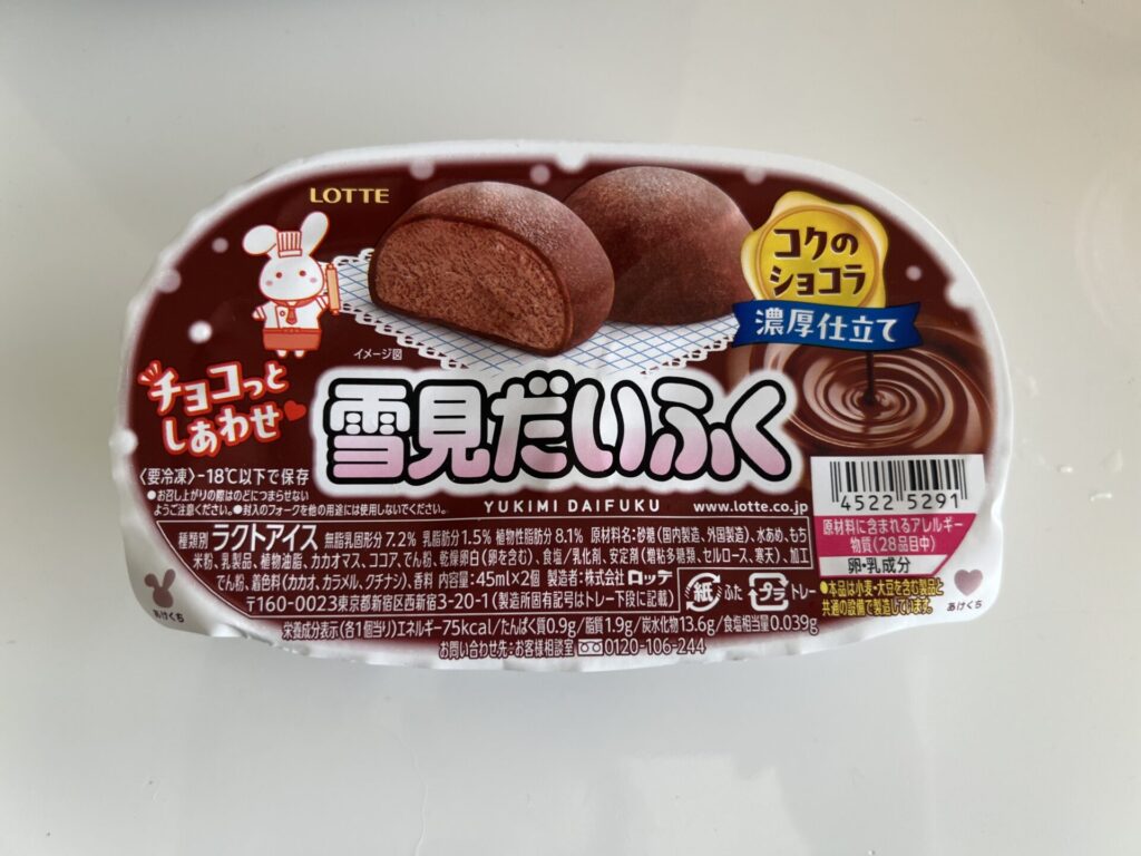 チョコの甘さがしっかり楽しめるので、チョコレート好きにはぜひおすすめしたい雪見だいふくです。